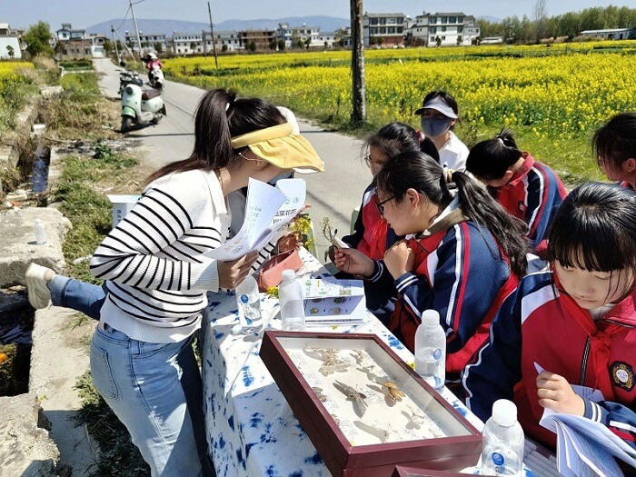 洱海綠色防控科技小院的工作人員聚焦油菜田的“健康保衛(wèi)戰(zhàn)”,以根腫病、白粉病、蚜蟲和菜青蟲為例,借助高清圖片和實(shí)物標(biāo)本進(jìn)行生動(dòng)講解,讓學(xué)生們學(xué)習(xí)了這些病蟲害的發(fā)生原因、癥狀及對(duì)油菜生長(zhǎng)的影響。學(xué)生們還了解了病蟲害發(fā)生后如何使用生物農(nóng)藥進(jìn)行綠色防控,從而減少或避免化學(xué)農(nóng)藥的使用。通過此次科普學(xué)習(xí),學(xué)生們不僅掌握了實(shí)用的綠色防控知識(shí),更深刻領(lǐng)悟到保護(hù)環(huán)境的重要性,綠色防控意識(shí)已在他們心中悄然生根發(fā)芽。