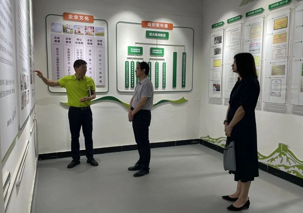 2025年6月6日,武漢市蔡甸區(qū)副區(qū)長(zhǎng)蔣排樓、蔡甸區(qū)經(jīng)濟(jì)信息化和科技創(chuàng)新局領(lǐng)導(dǎo)一行到武大綠洲進(jìn)行調(diào)研,健康中國(guó)工程綠色發(fā)展中心主任/中山大學(xué)鄉(xiāng)村振興專業(yè)委員會(huì)專家導(dǎo)師/中南財(cái)經(jīng)政法大學(xué)博導(dǎo)/武大綠洲董事長(zhǎng)林春鴻博士和武漢大學(xué)&武大綠洲聯(lián)合研發(fā)中心執(zhí)行主任胡家鑫、科普教育部主管陶佩文等公司領(lǐng)導(dǎo)對(duì)他們的到來(lái)表示熱烈歡迎。